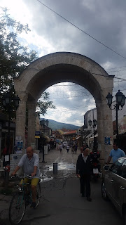 As I said before Skopje has a cool mix of old historic landmarks with new ones and the best example of that is the town square. There is an old stone bridge linking the modern town square to the old town market. It's a historic sight, with statues and water fountains at each end and leading up the square that has a giant water fountain and Statue to Alexander the Great in the middle. The roads leading to the square have a series of old monuments and statues, like the arch 'Port Macedonia' that covers one of the streets to the square.